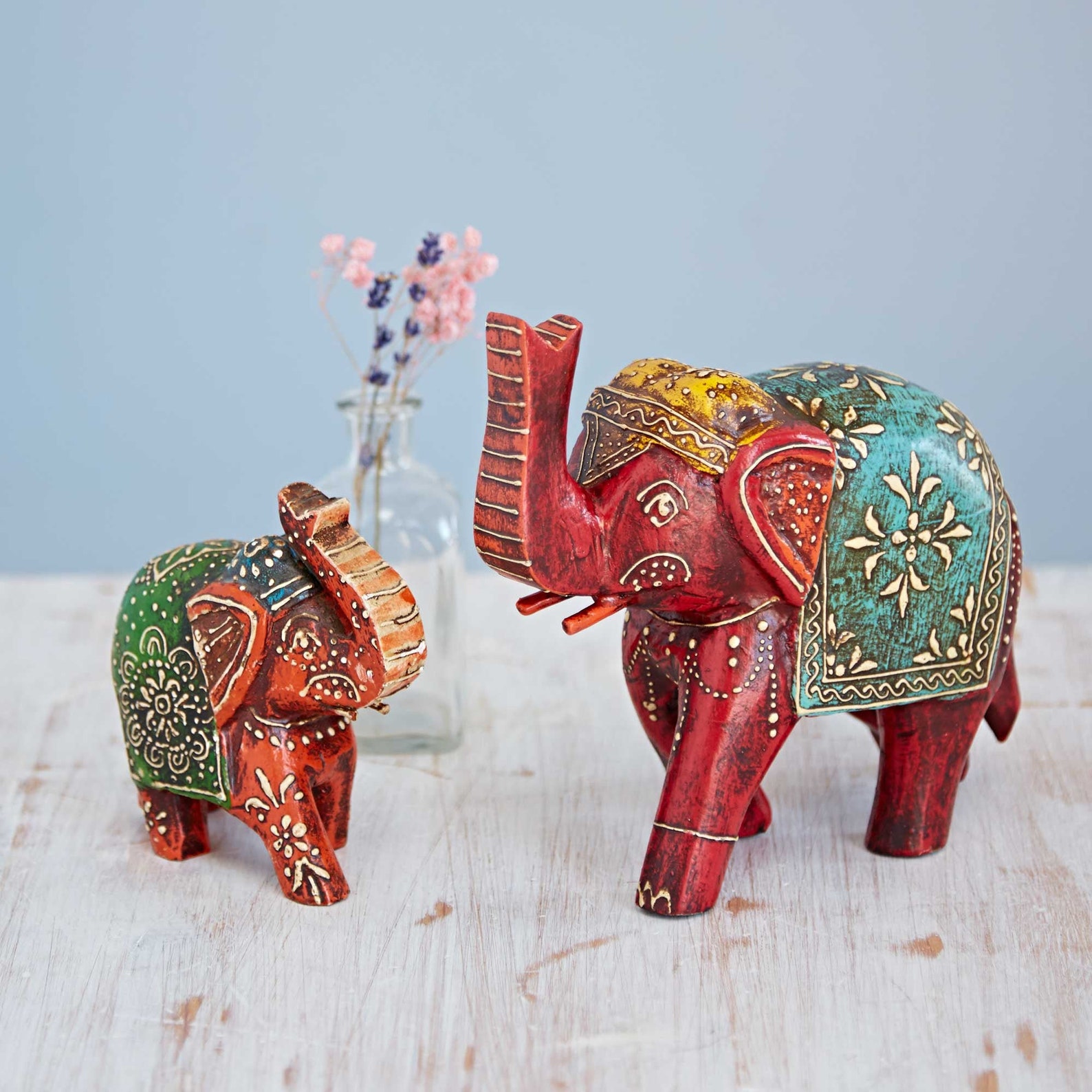 Kleurrijke antieke stijl Olifant Olifant Mango Houtsnijwerk Etsy